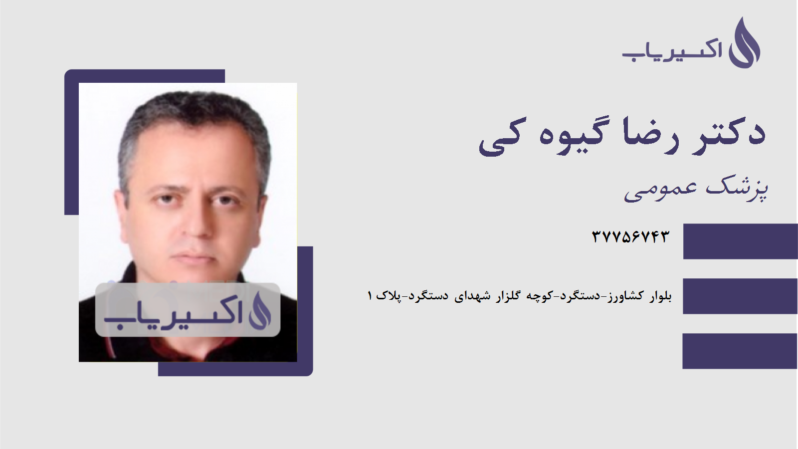 توضیحات توضیحات آدرس آدرس بلوار کشاورز-دستگرد-کوچه گلزار شهداي دستگرد-پلاک 1 شهر / استان شهر / استان اصفهان شماره تماس شماره تماس شماره تلفن دکتر رضا گیوه کی اصفهان : 37756743