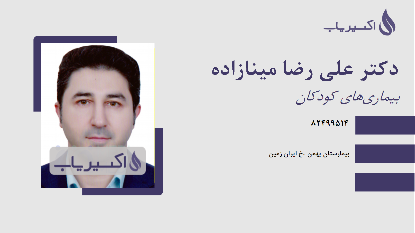 توضیحات توضیحات آدرس آدرس بیمارستان بهمن ،خ ایران زمین شهر / استان شهر / استان تهران شماره تماس شماره تماس شماره تلفن دکتر علی رضا مینازاده تهران : 82499514