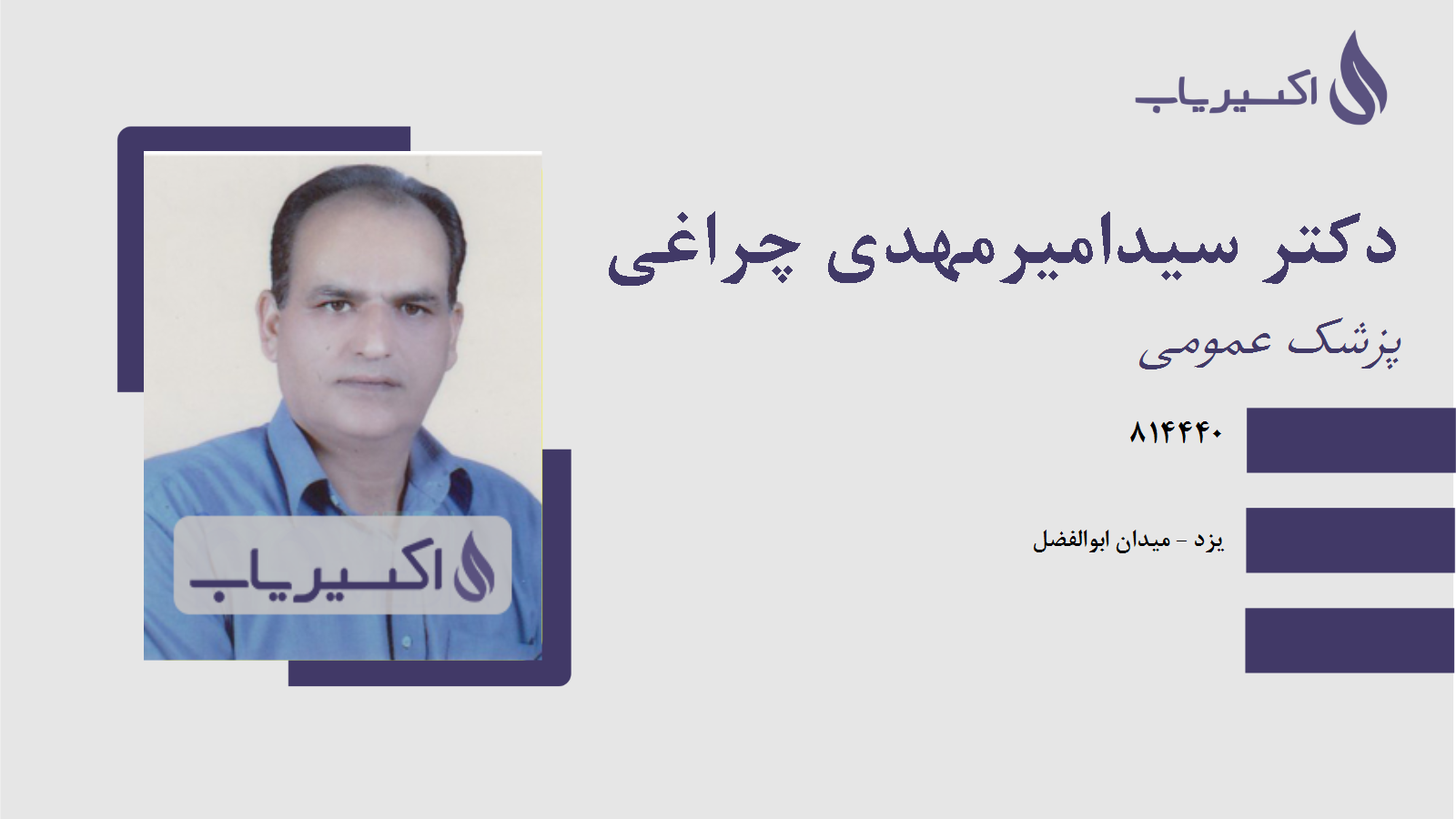 توضیحات توضیحات آدرس آدرس یزد - میدان ابوالفضل شهر / استان شهر / استان یزد شماره تماس شماره تماس شماره تلفن دکتر سیدامیرمهدی چراغی یزد : 814440